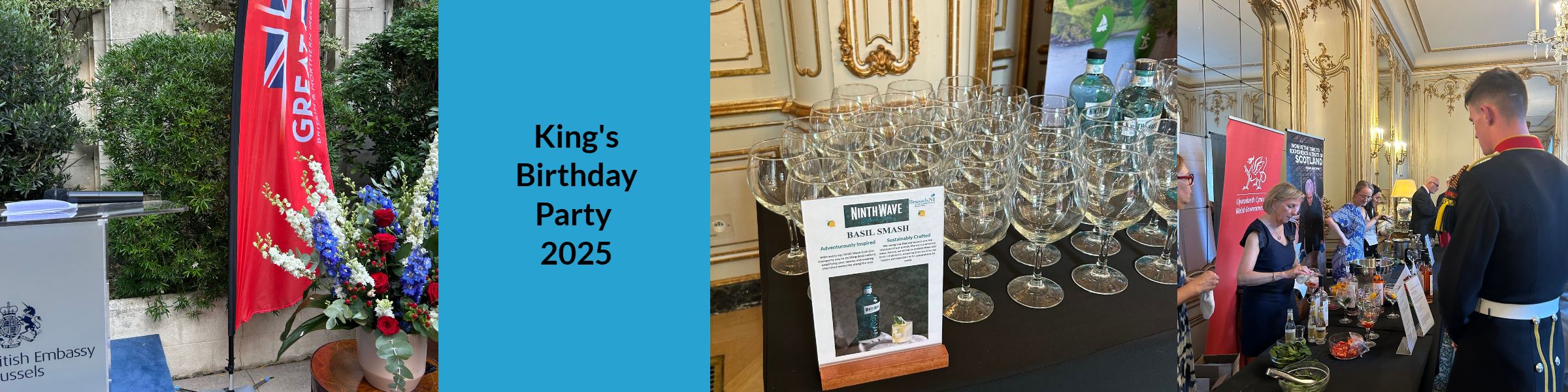 On 19th June, the British Embassy to Belgium held a party to mark the King’s Birthday. We partnered with the Embassy to serve Ninth Wave Irish Gin. An award winning gin distilled by Ballynahinch’s Hinch Distillery, guests were able to learn more about Northern Ireland’s growing distillery scene and taste the sustainably crafted gin.